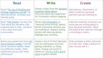 A genre choice board allows students to choose how they will learn and interact with a new genre of writing. You can set up this type of choice board like a grid. Use columns for categories, such as “reading,” “writing,” and “multimedia.” Create rows with different activities for each category. Students then pick an activity from each column to complete in a certain time frame.