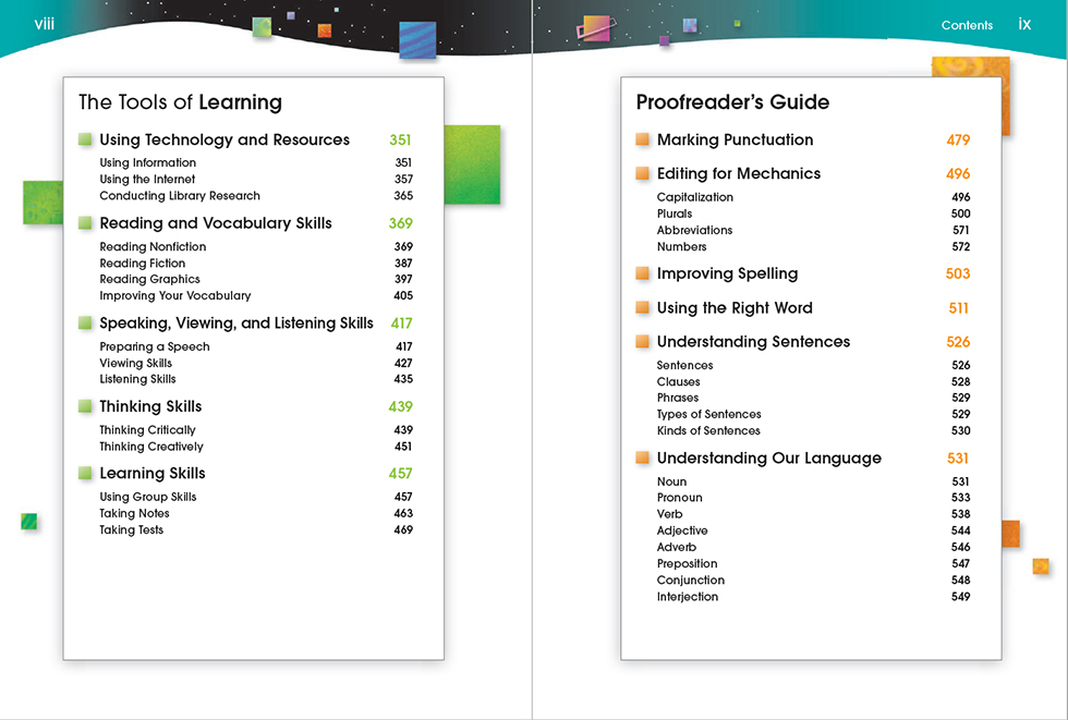 - The Tools of Learning section helps students effectively study, read, listen, speak, and take tests.