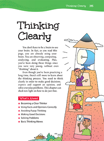 Note that this chapter will help students understand the relationship between facts and opinions. It will also cover many more strategies for thinking clearly.