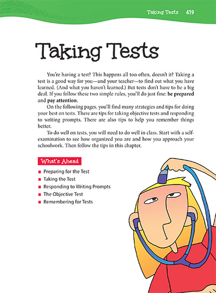 Let students know that this chapter has many strategies that they can use to succeed on tests.