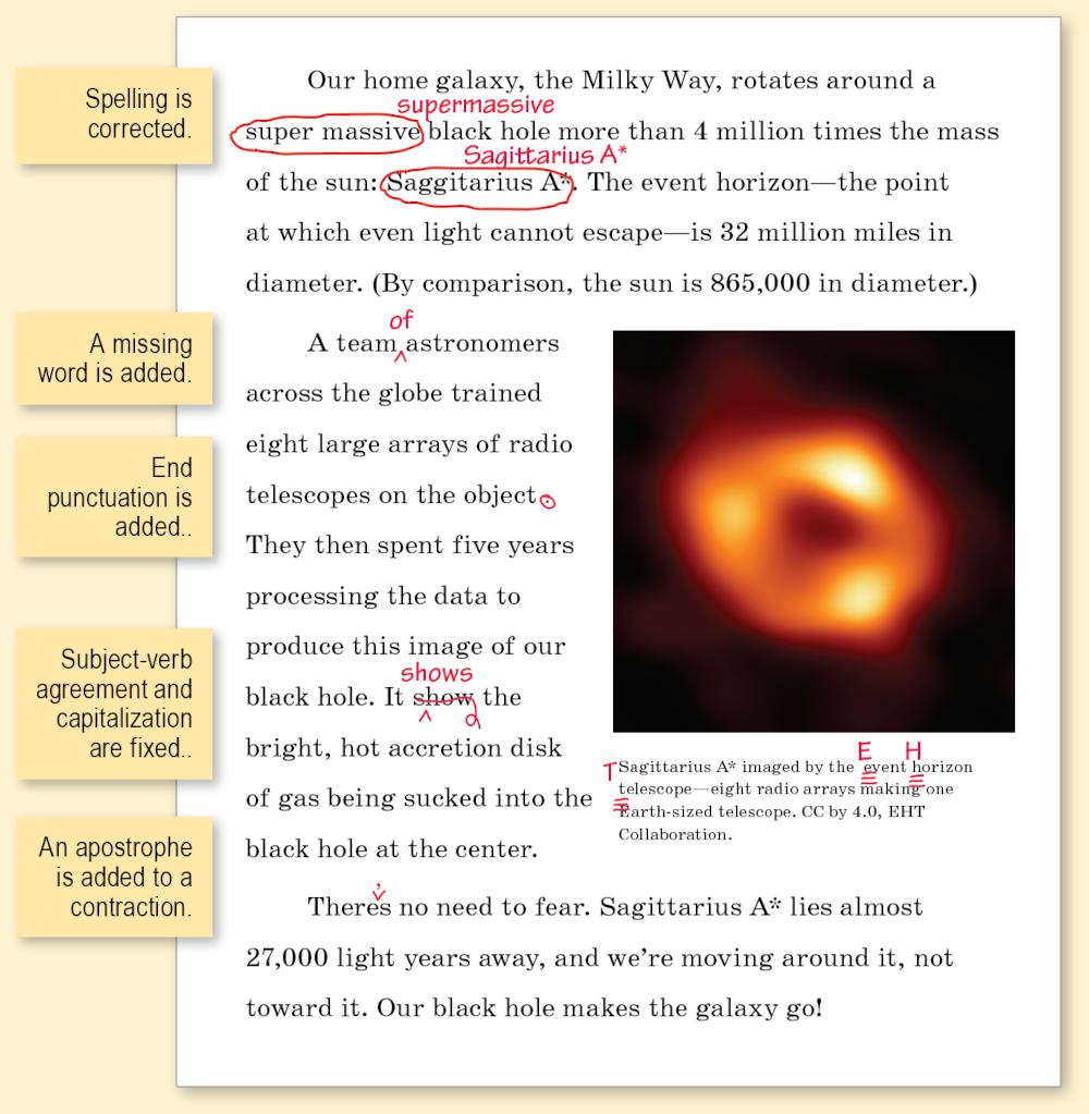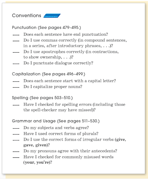 Use this editing checklist when you edit and proofread your writing. Also refer to “Common Mistakes” on pages 62–63 for other errors to watch for. Remember: You should carefully edit your writing only after you have revised it.