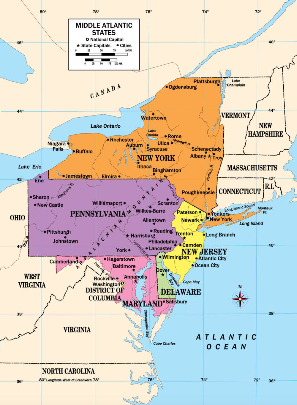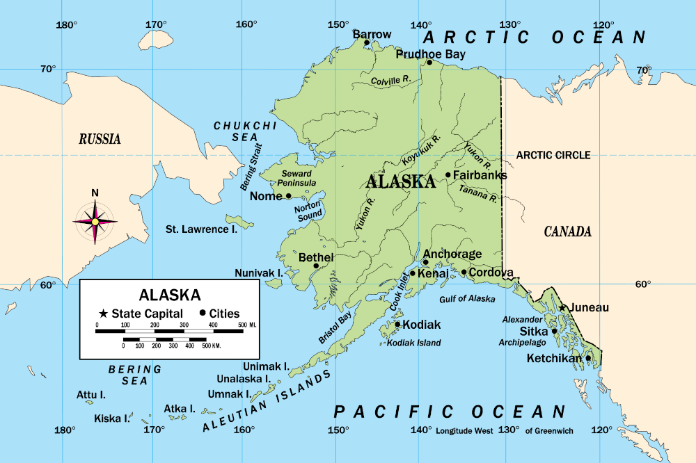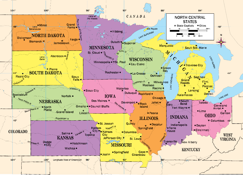 Legends also have a map scale. The map scale shows you how far it is between places. Here is the scale from the map of the United States. It uses inches.